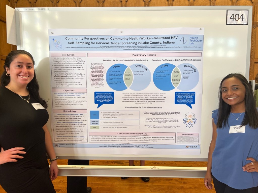 Sathveka Sembian and Alyssa Arreola poster titled “Community perspectives on community health-worker-facilitated HPV self-sampling for cervical cancer screening in Lake County, Indiana.”