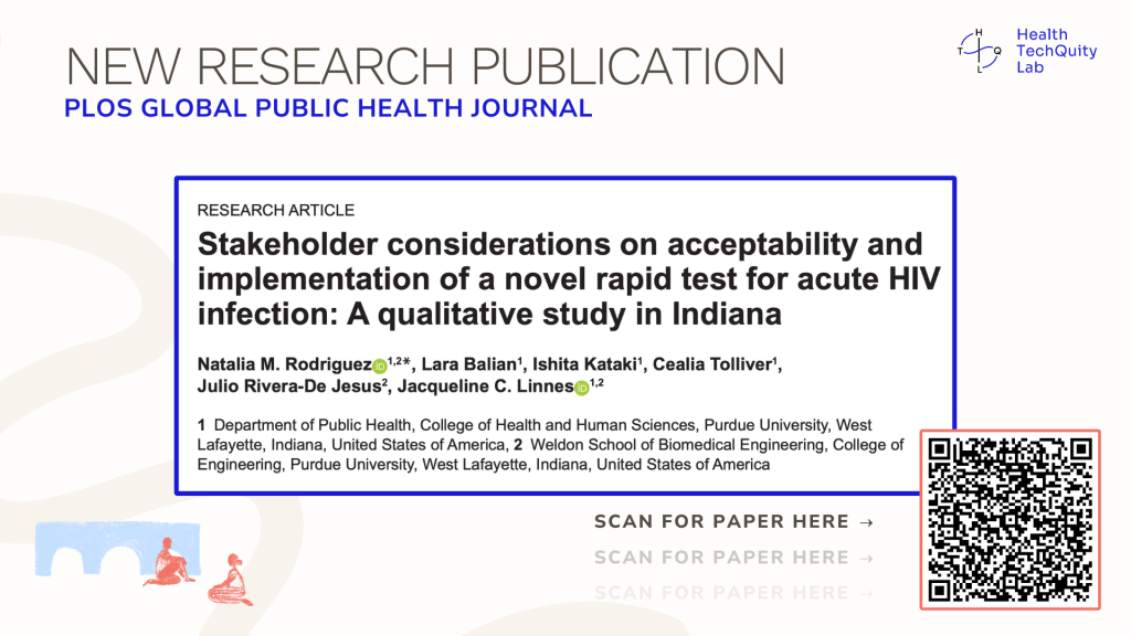 HTQLab is happy to share that our article Stakeholder considerations on acceptability and implementation of a novel rapid test for acute HIV infection: a qualitative study in Indiana, is now published in PLOS Global Public Health journal.