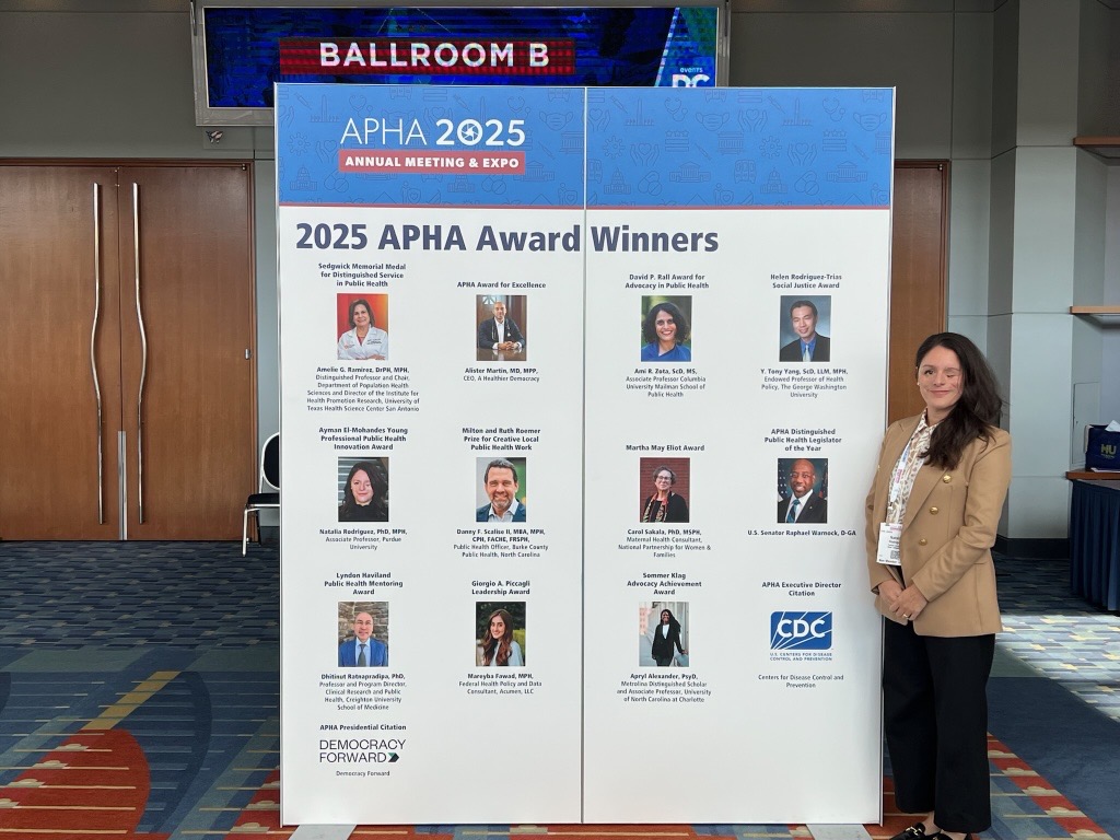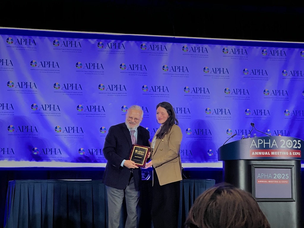 We’re celebrating Dr. Natalia on receiving the Ayman El-Mohandes Young Professional Public Health Innovation Award from APHA 2025. The award was presented by Dr. Ayman El-Mohandes himself, the internationally recognized public health leader for whom the award is named.